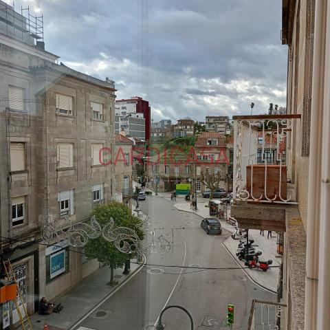Edificio de cuatro alturas situado entre calle principal y la alameda de Bouzas.